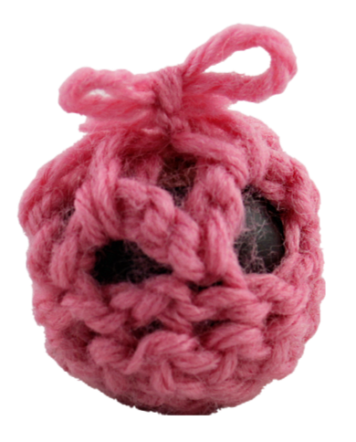 Acorn holder, 2021, yarn, string, bead, and acorn